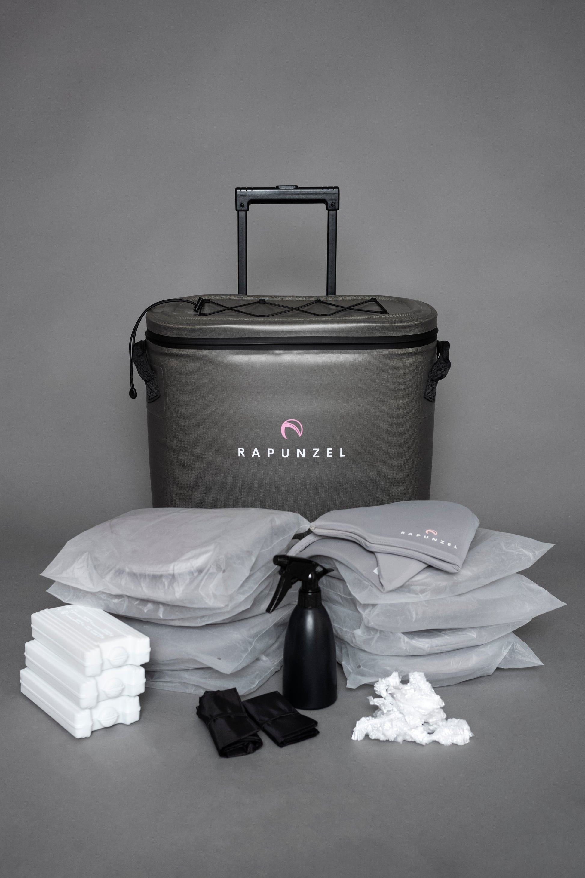 - 1 x køletaske på hjul, så du let kan transportere kølehætter og tilbehør til og fra hospitalet.